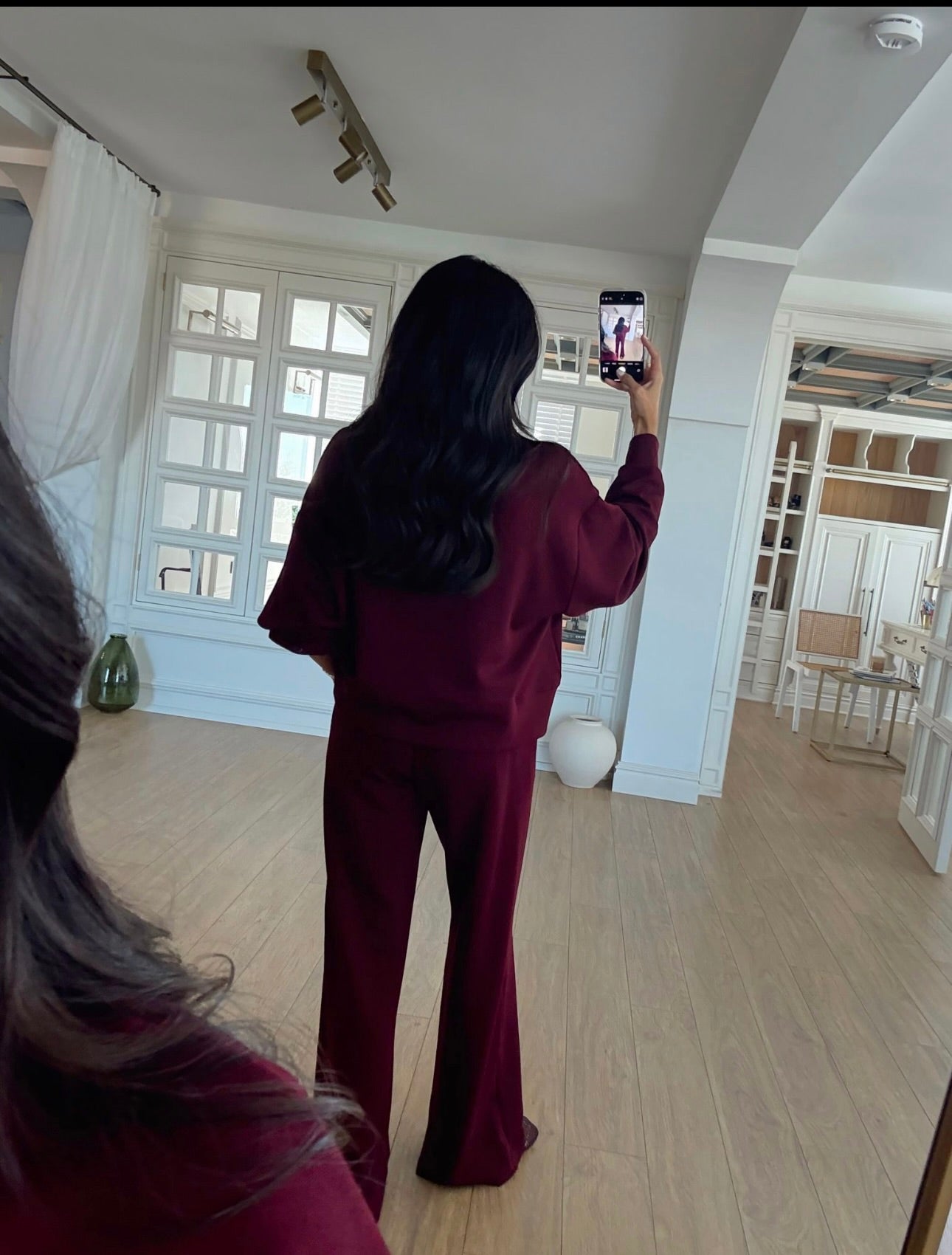 Composé d’un pantalon fluide taille haute et d’un sweat oversize légèrement structuré, cet ensemble s’impose comme un incontournable du dressing moderne.